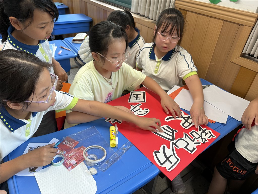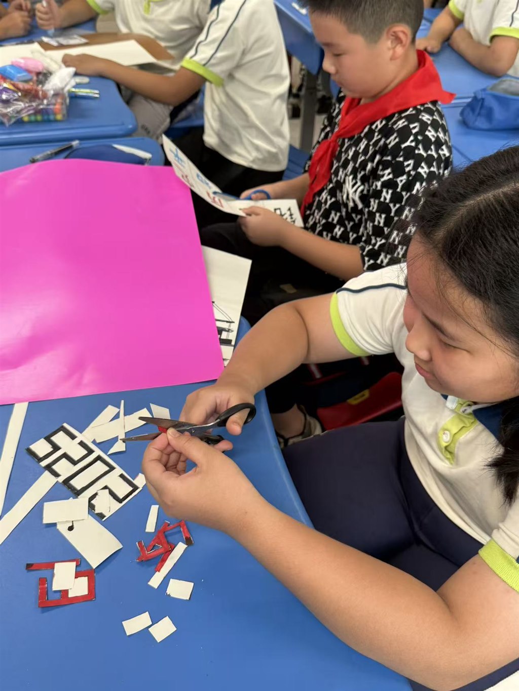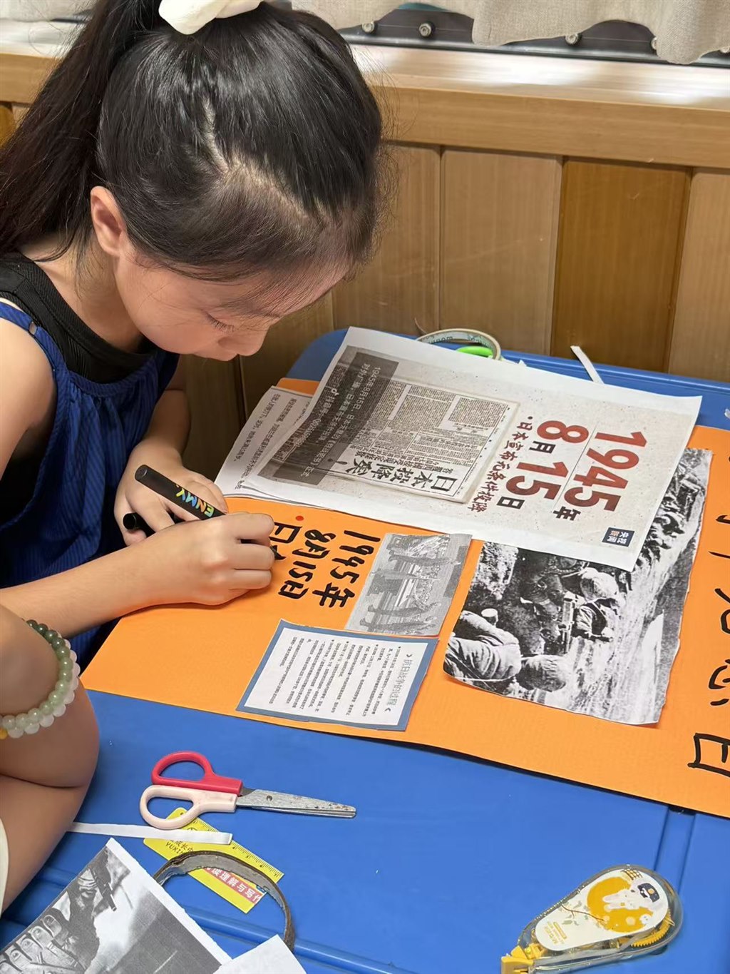 剪纸与拼贴创意与巧思的汇聚地。一把把剪刀在纸上灵活穿梭,一张张彩纸在同学们手中变幻出各种形状;一块块拼贴材料被精心组合,构成了一幅幅富有深意的作品。有的同学剪出了八路军战士冲锋陷阵的场景,那矫健的身姿和坚定的步伐,仿佛在向我们诉说着他们的英勇无畏;还有的同学们利用废旧报纸、杂志等材料,拼贴出了抗战时期的标志性建筑、英雄人物等。大家充分发挥自己的想象力,将不同的材料巧妙组合,重现了那段艰苦岁月。