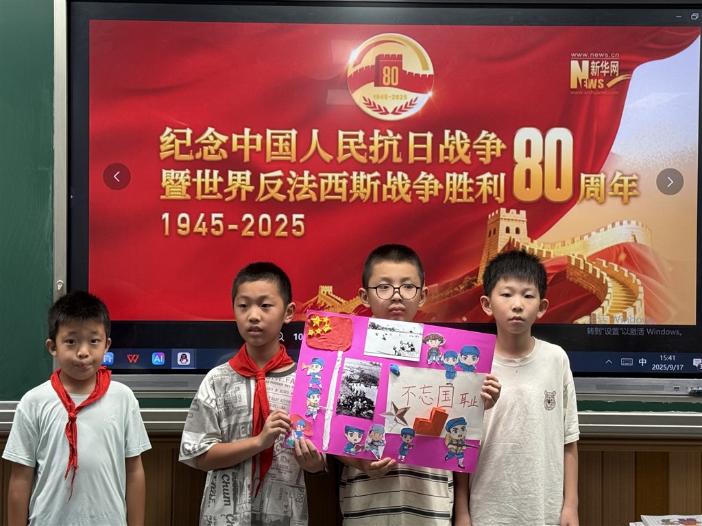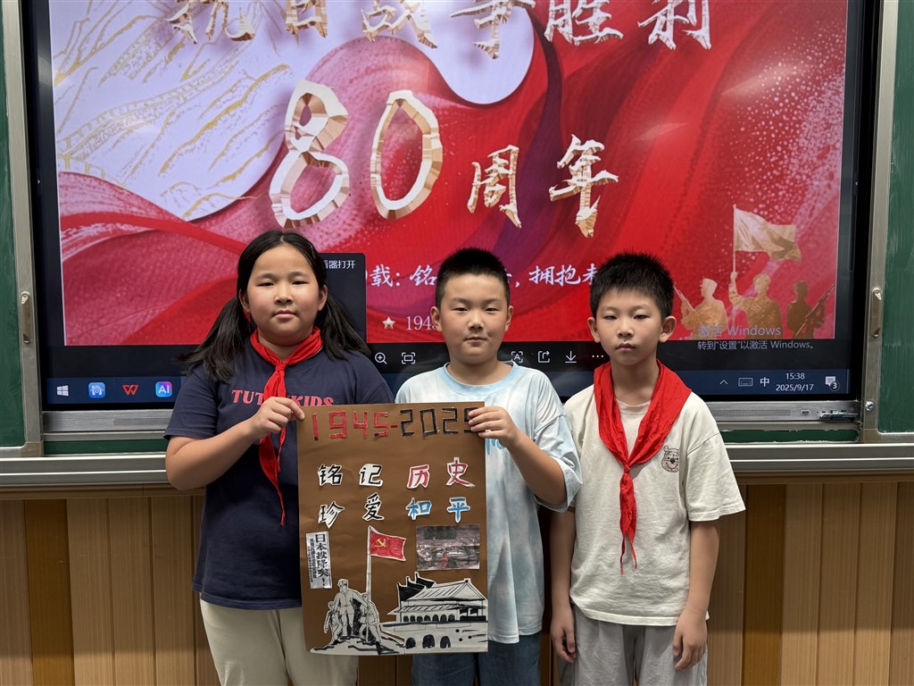 当历史的车轮缓缓驶过八十个春秋,抗战胜利的荣光依旧熠熠生辉。为铭记那段波澜壮阔的历史,传承伟大的抗战精神,四 20 班的同学们利用班队课开启了一场别开生面的主题活动。大家用稚嫩却充满力量的双手,以多元的实践形式,向那段峥嵘岁月致以最崇高的敬意。