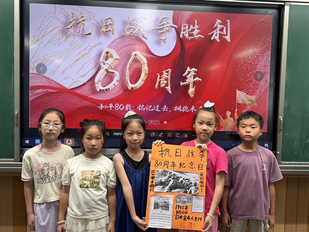 在这次抗战胜利 80 周年的主题活动中,四 20 班的同学们通过亲身体验和感受,更加了解了抗战的艰辛和伟大,明白了今天的和平来之不易。历史是一面镜子,它让我们看到了过去的苦难,也让我们更加珍惜现在的幸福生活,将来为祖国的繁荣富强贡献自己的力量。四 20 班的同学们以实践为笔,以历史为墨,书写了一曲对抗战的赞歌。让我们携手共进,在团结合作的道路上,铭记历史,开创更加美好的未来!