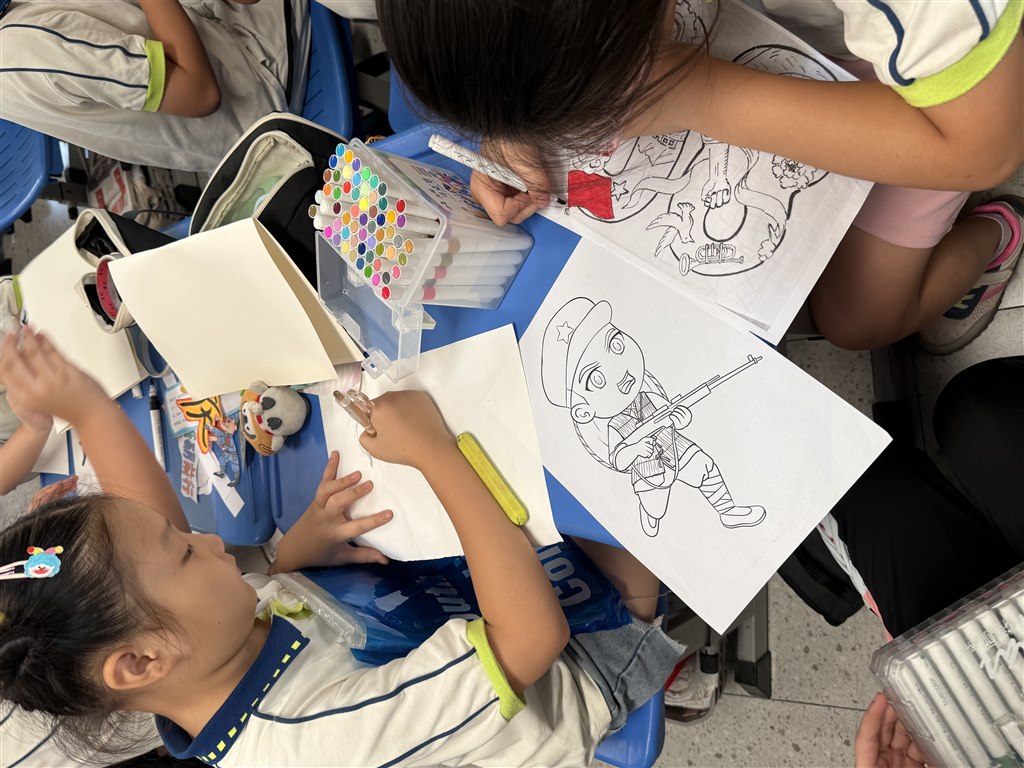 经过一番努力,一幅幅精美的主题作品呈现在大家面前。有的作品以红色为主色调,象征着抗战时期的热血与激情,画面中战士们坚定的眼神和冲锋的身姿栩栩如生;有的作品则用柔和的色彩描绘出和平年代先进的武器,与抗战的艰辛形成鲜明对比。这些作品凝聚着同学们的智慧和汗水,更体现了团队合作的力量。它们就像一座座历史的丰碑,铭记着抗战的艰辛与胜利的荣耀,也见证了同学们在合作中成长的足迹。