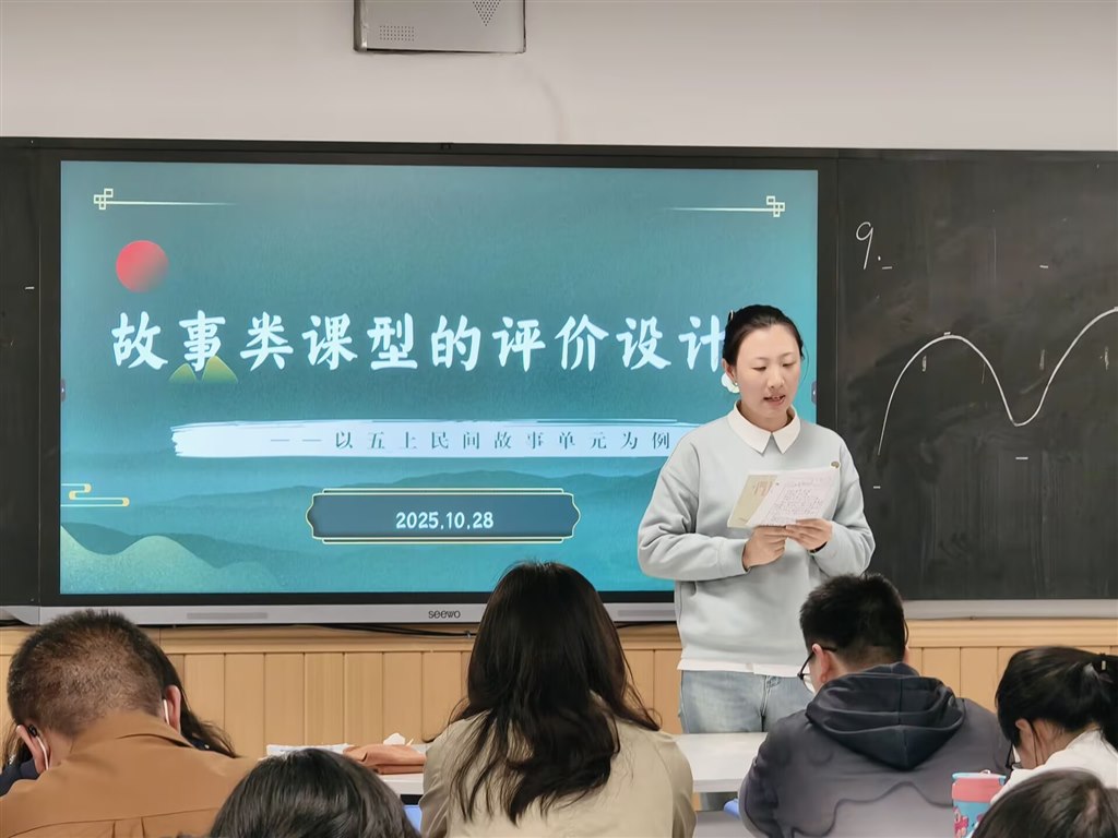 2025年10月28日下午,薛家实验小学三至六年级全体语文老师在丽园校区多媒体教室,参与由五年级语文教研组联合承办、以“故事类课型的评价设计”为主题的教研活动。