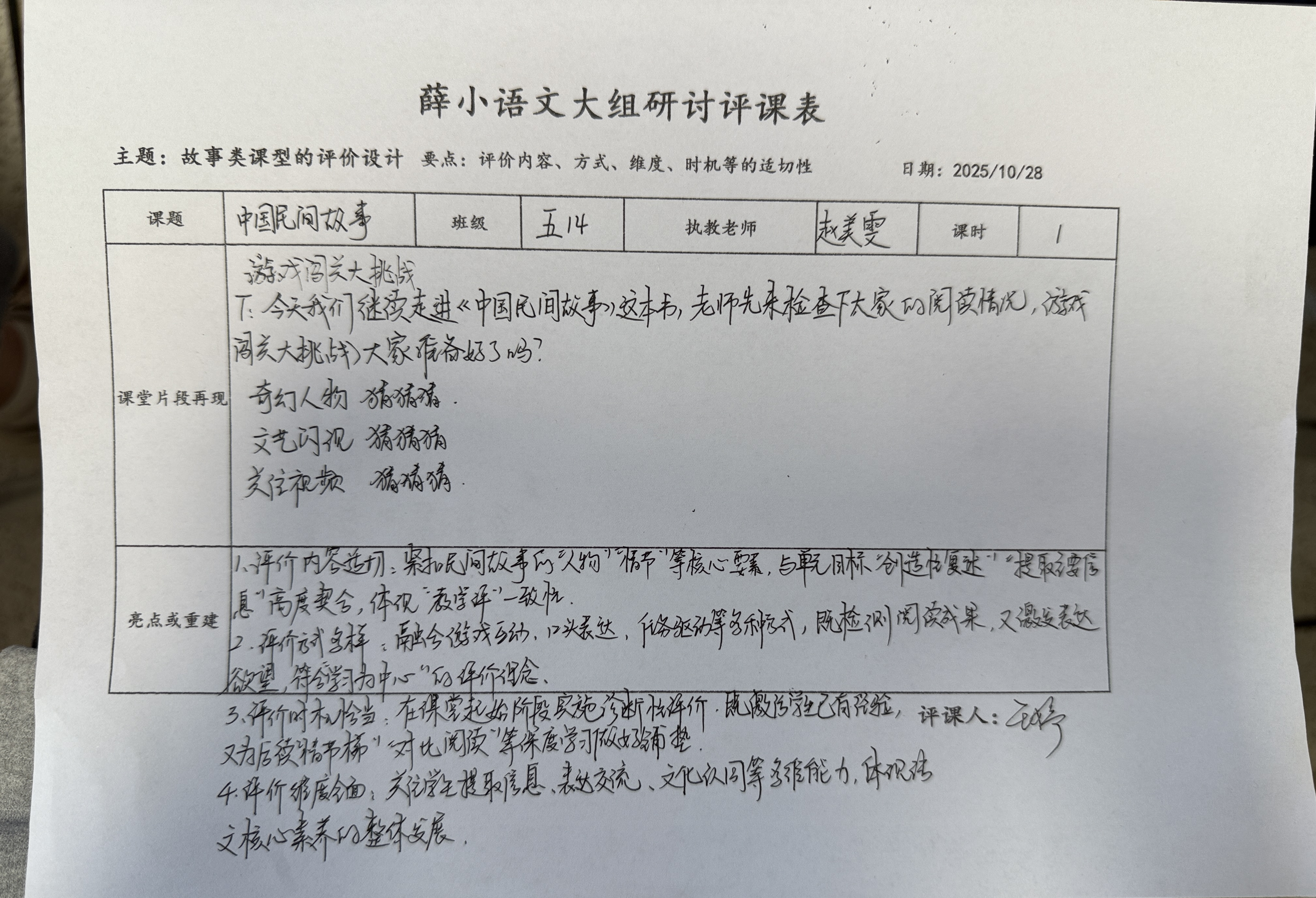 十月评赵美雯老师的课